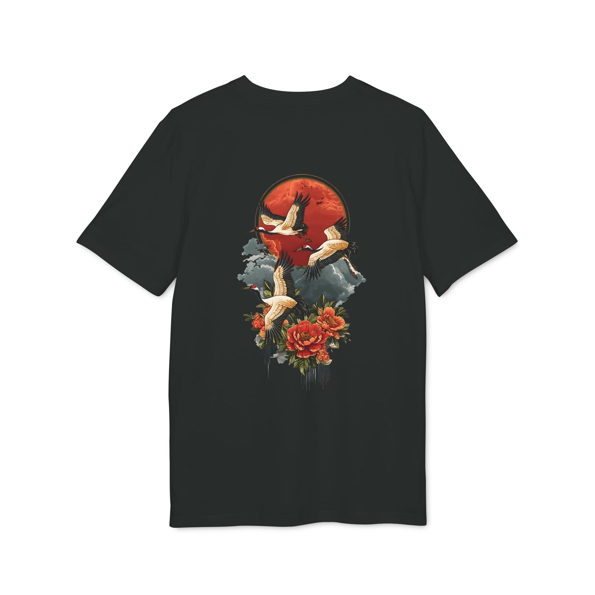 Anmut im Flug, Frieden in Bewegung – Tsuru no Tabi zeigt die zeitlose Eleganz der Kraniche unter einer roten Sonne.