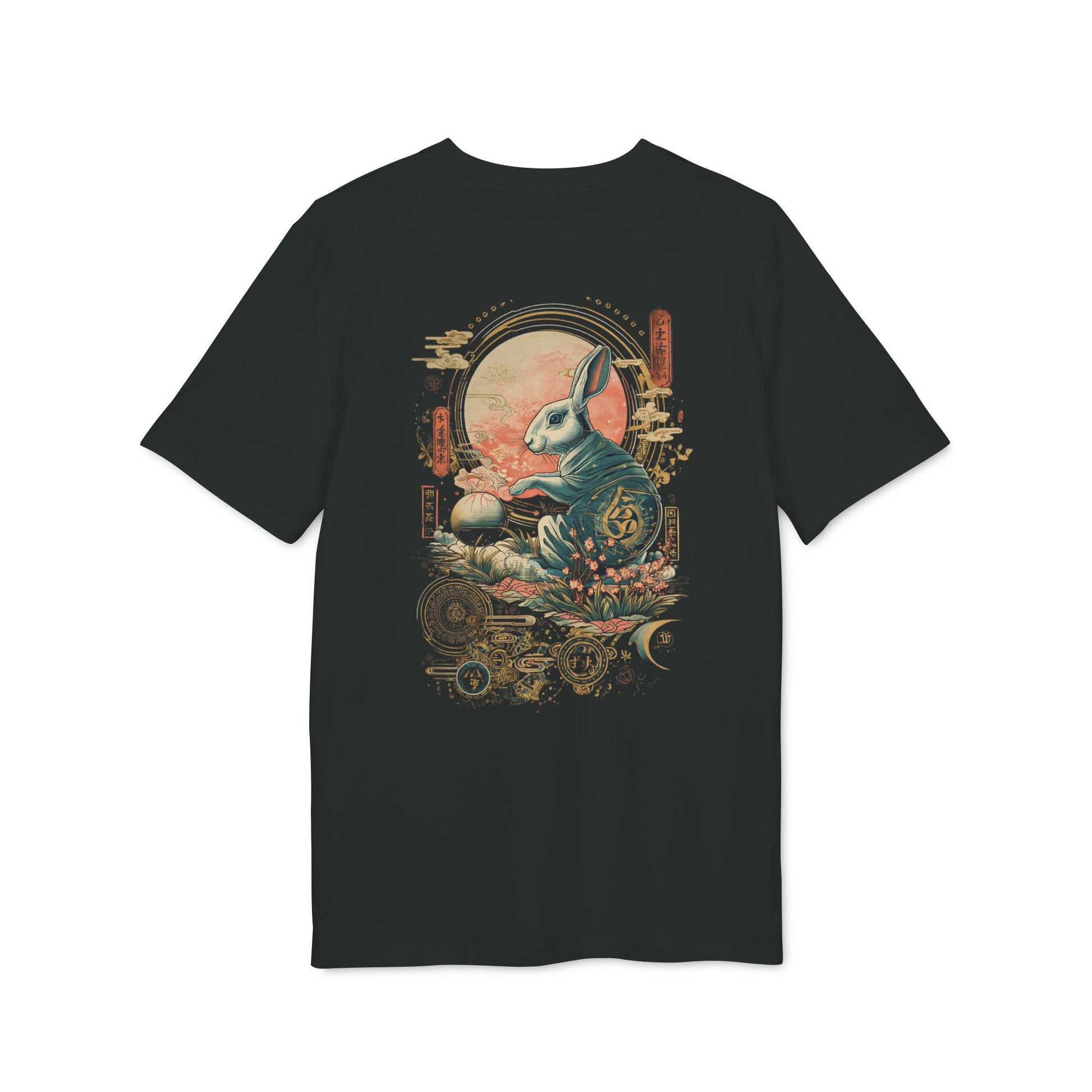 Wrapped in celestial robes, surrounded by cosmic symbols and blooming sakura, this divine rabbit bridges heaven and earth โ purity in motion, serenity in chaos.