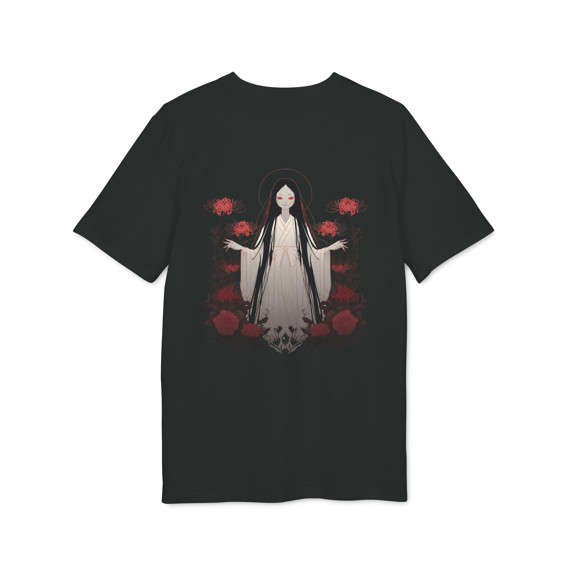 Gedruckt in kontrastreichem DTG-Druck auf weicher Bio-Baumwolle – Higanbana no Miko ist nicht nur ein Motiv, sondern eine Stimmung, ein Ritual, ein Hauch Ewigkeit.