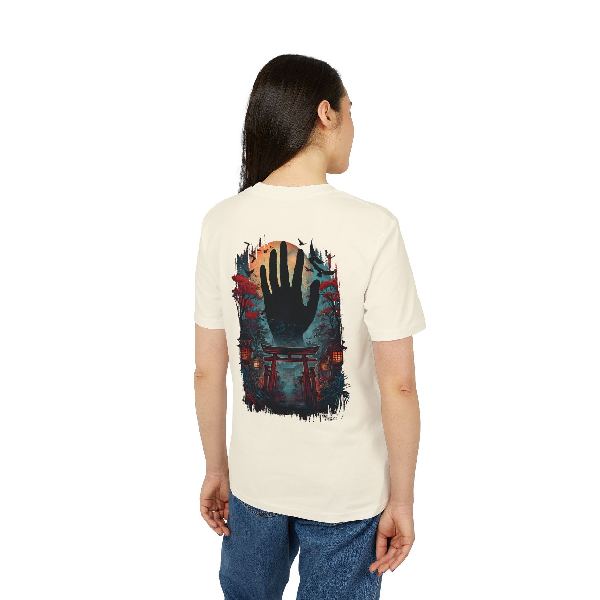 Printed in high-resolution DTG (Direct to Garment) on soft organic cotton, it radiates depth, detail, and balance — a masterpiece of contrast and calm.
