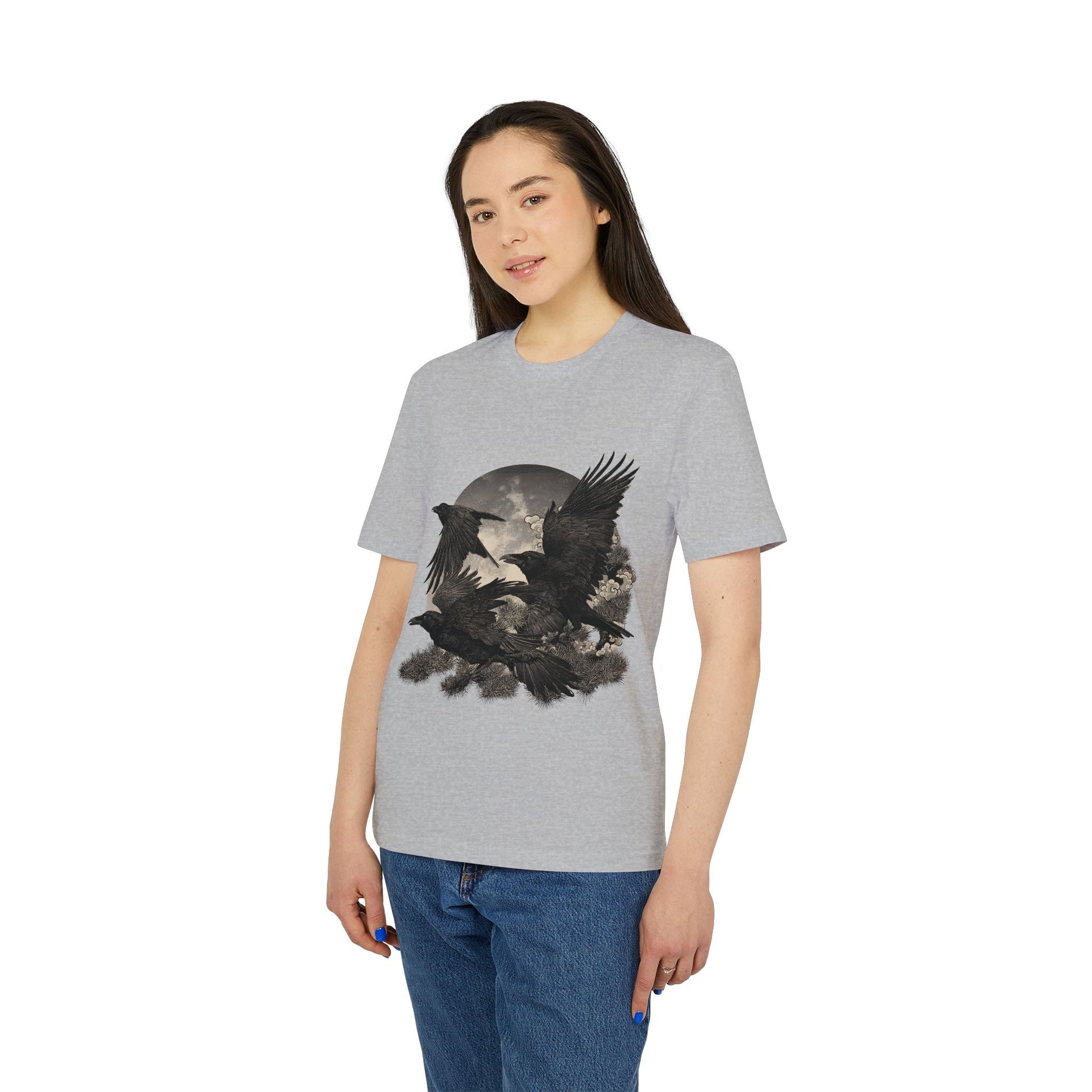 Feiner DTG-Druck auf weicher, atmungsaktiver Bio-Baumwolle. Zeitlos. Unheilvoll. Eindrucksvoll.